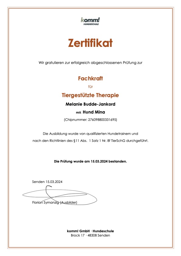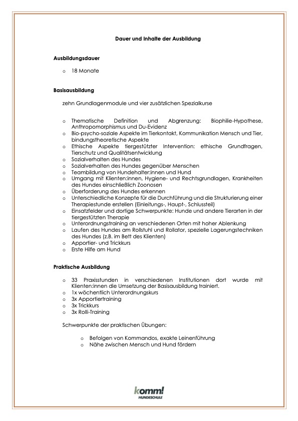 Im vorsichtigen, sensiblen, spielerischen und professionell begleiteten Umgang mit dem Hund wird eine ganzheitliche Ich-Bildung erzielt.