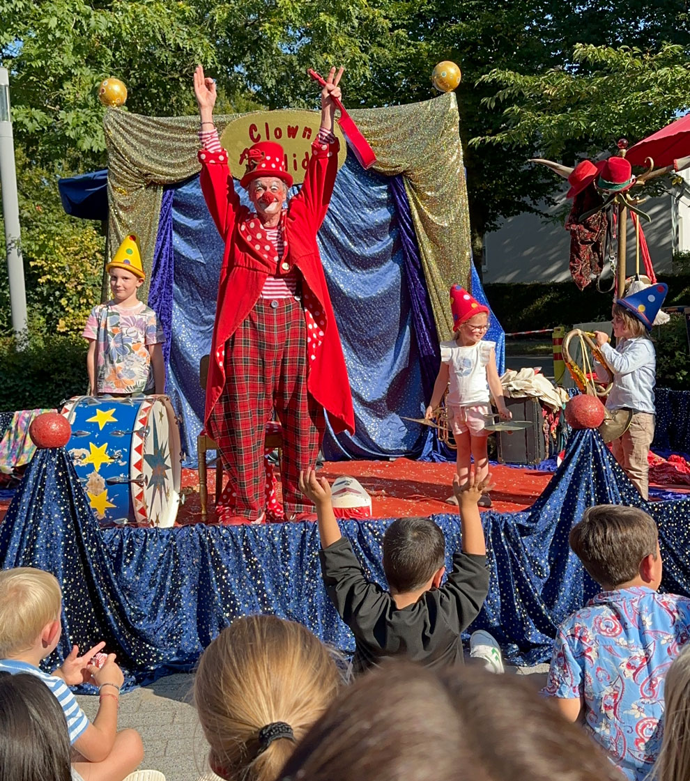 Mit einem besonderen Projekt schloss der Tag ab. Eine Woche lang hatten Kinder der Einrichtung die Gelegenheit mit Clown Fidelidad in seinem Atelier eine Musik-Parade einzustudieren. Ein besonderes Erlebnis, welches dann zur Aufführung in der Manege seinen krönenden Abschluss fand. Hier geht ein besonderer Dank an die Johannisstiftung, in Persona an Reinhardt Witt und Thomas Waza, die durch eine großzügige Spende dieses Projekt erst möglich gemacht haben.